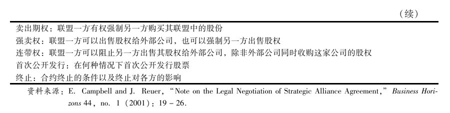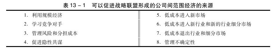 儘管管理跨國界的戰略聯盟存在巨大的挑戰,但是同時也存在巨大的機遇。戰略聯盟能使企業實現表15-1中所列的任何範圍經濟。此外,如果企業在管理戰略聯盟過程中形成有價值的、稀缺的和難以模仿的資源和能力,那在國際環境下,聯盟戰略能夠成為可持續競爭優勢的來源。
