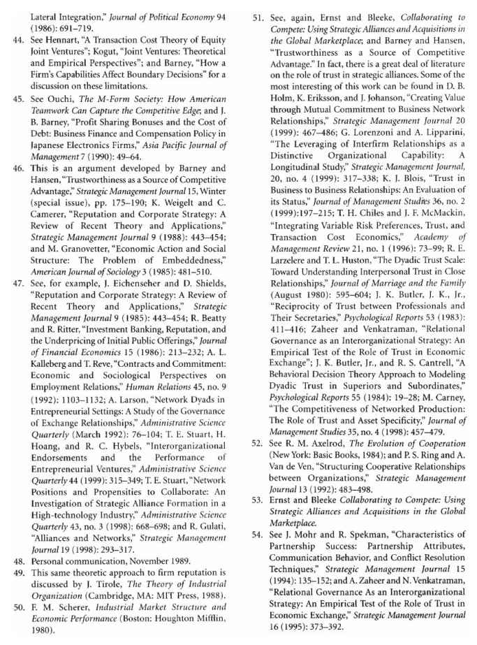 在這些10分鐘的交流期間,這位經理人很難知道這些日本經理人是否是想給出一個完整、精確的答案,還是打算給一個不完整、具有誤導性的答案。在這種模稜兩可的情況下,為了防止潛在的機會主義,西方經理人可能要求比實際需要更高的治理水平。事實上,一份研究表明,對國際合作夥伴的信譽感知度會影響企業開展國際業務時採取的治理機制。如果企業認為合作伙伴是不值得信賴的,企業就會採取複雜的治理措施,包括合資——即使事實上該合作伙伴是值得信賴的。51