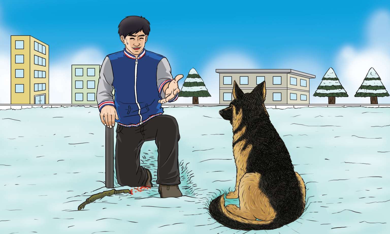 天上沒有云,太陽照在雪上,雪變得非常漂亮,我陪著維克在院子裡高興地跑著,跳著。突然,正跑著的維克一下站住了——它看見雪地上有個棍子21,這棍子21讓它受不了!而這正是我計劃的一部分。我像什麼都沒發現,繼續大叫著、大笑著,快樂地跑著。維克看了棍子21一會兒,慢慢轉過頭,又跟著我跑起來。看我那麼高興地和它玩兒,它也很快高興起來,好像忘了棍子21的事。再次跑到棍子21前時,維克只停了停,看了棍子21一下,就跑了過去。後來,我又帶著維克好幾次從棍子21旁邊跑過,維克已經完全適應了,或是已經忘了棍子21的事,現在它連看都不看棍子21一下了。我心裡很高興——我的計劃已經完成了一半!現在要進行計劃的後半部分。我拿出它最喜歡的那個毛巾把兒41,就像那位軍犬20隊的訓導員3向遠處、高處扔54球一樣,突然把毛巾把兒41扔54出去。聰明的維克想都沒想,飛一樣追過去!毛巾把兒41還沒掉下來,維克已經咬22住它,高興地轉過身體向我跑來,而我,早就站到了棍子21旁邊,用左腳把一些雪翻到右腳上面,做好準備。等維克高高興興地跑回來,把毛巾把兒41送到我手裡,希望我再次跟它做遊戲的時候,我突然輕輕把毛巾把兒41往右腳那裡一扔54,維克馬上一口咬22過來,想咬22住正往下掉的毛巾把兒41,幾乎同時,我把右腳送到它的嘴旁邊!啊……我疼得大叫著倒下去,心裡卻很高興——維克像我計劃的那樣,一口咬22住了我的右腳!