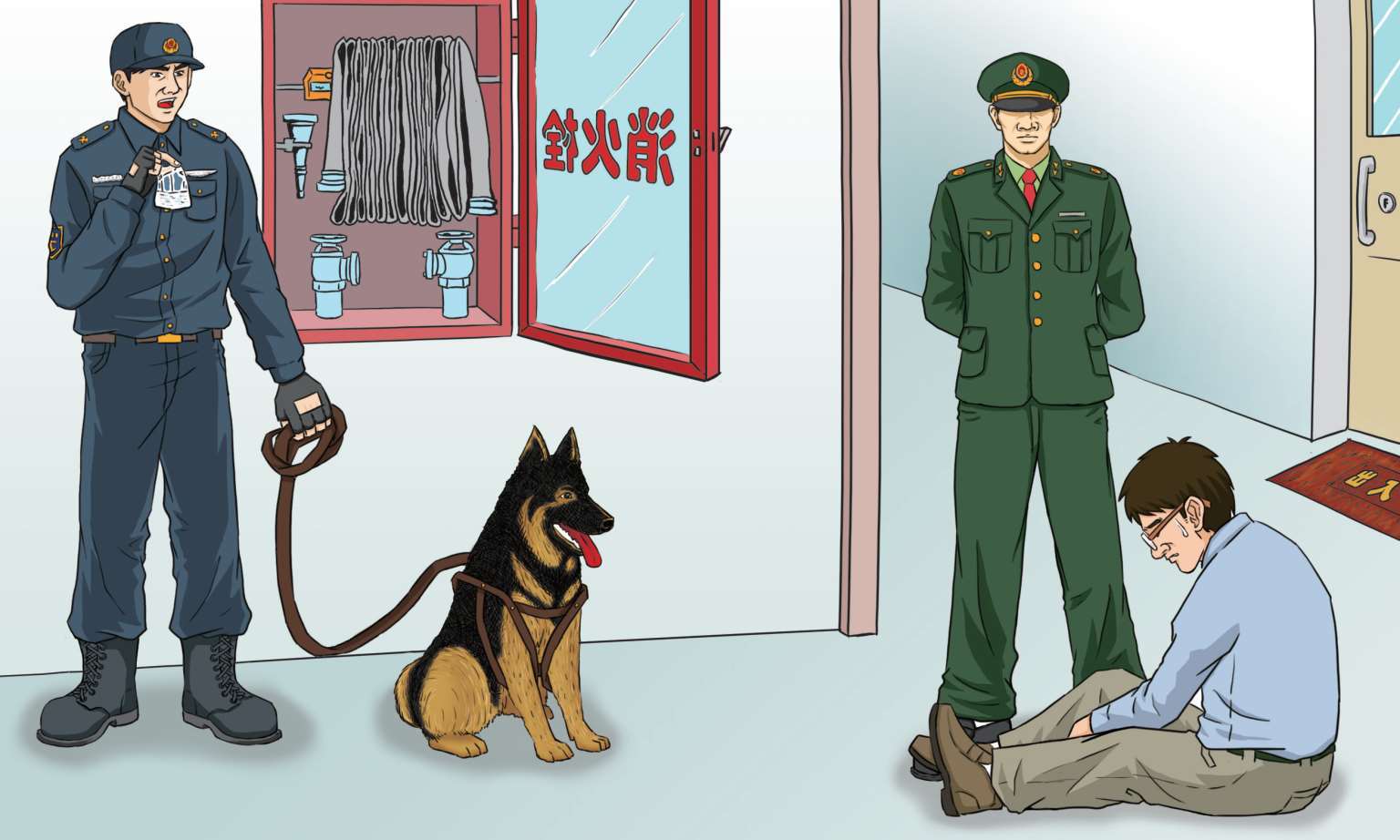 “維克怎麼了?”主任4注意地看著維克問我。說真的,我並不明白維克為什麼一定要出去,但是,根據我對維克的瞭解,我相信它一定是發現了什麼。我跟著維克來到外面,在離門七八米,跟電梯很近的牆上有個消火栓[6],那是為了怕樓裡著火[7]準備的。維克跑過去,突然跳起來對著這個消火栓69又咬22又撲36又抓37,很興奮43的樣子……那個男人見了,腿都站不住了,一下子坐了下去……原來,這個毒販62沒有把毒品45放在自己家裡,而是放到人們不注意的消火栓69裡。他以為,放在那裡一定沒問題。沒想到,不管他把毒品45放到哪裡,維克都能找得到!