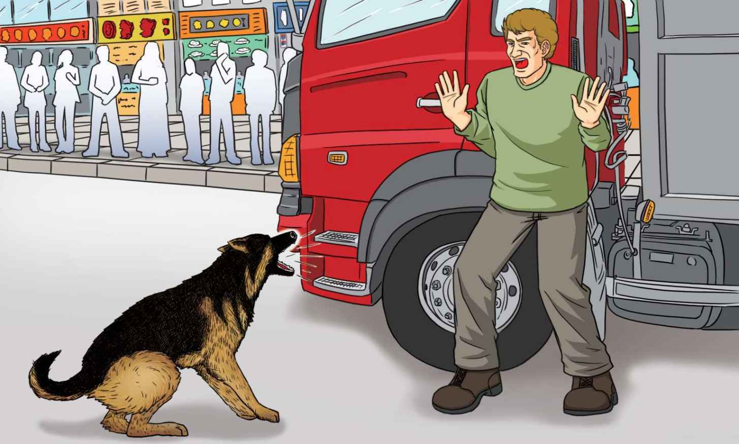 那輛大汽車的司機是個高大的外國人,頭髮挺亂,正在一個商店裡和服務員談著什麼,服務員是中國人。他們談話,有時候用英語,有時候用民族語言。看見維克在車的輪子那裡咬22,司機已經明白了一切,但是,他看到我們只是兩個年輕人,再說,我們開的是一輛挺舊的汽車,他就以為自己能佔便宜[11],我們的舊車跑不過[12]也撞不過[13]他那很大的德國18新車。他很快地付了錢,出門就朝汽車跑去。跑?你想也別想!我大叫了一聲:“維克,上!”要知道,維克曾經是最棒的軍犬20,沒等那個高大的外國司機打開汽車的門,維克就已經大叫著追上了他,看著維克那凶猛14的樣子,他害怕極了,聲音發抖78地用漢語說:“別,別,我不跑了……”