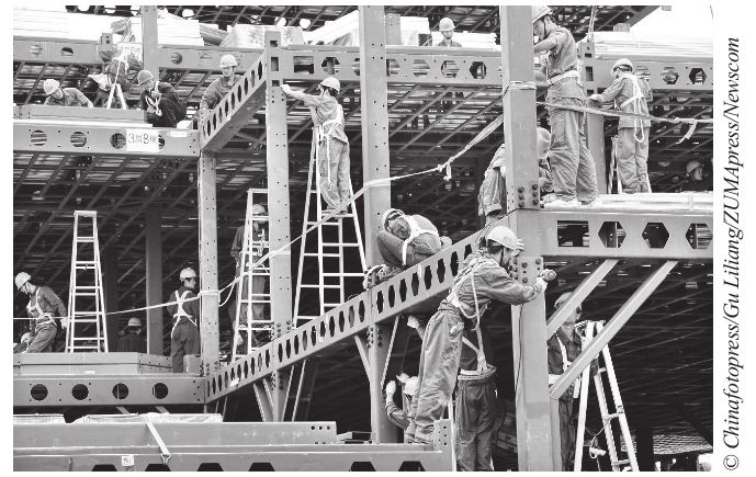 中國工人生產鋼製框架用來建造15層的新方舟賓館,這棟建築在6天內建造完成。