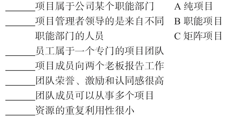 3.將下面的特徵與項目團隊組織結構匹配起來: