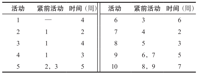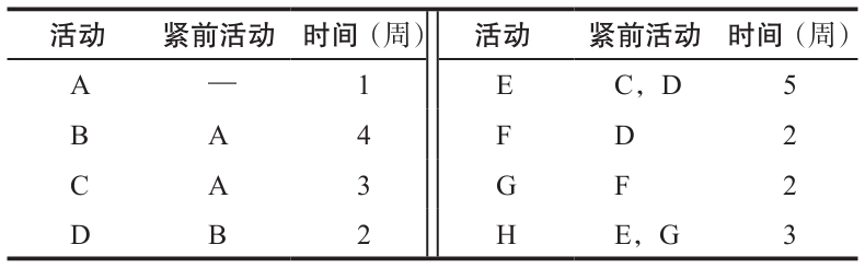 6.用關鍵路徑法為下面的活動制訂計劃。