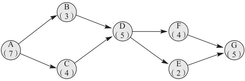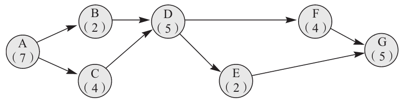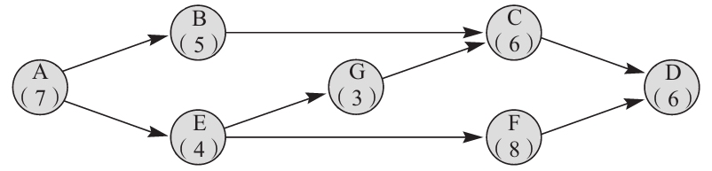16.關鍵路徑網絡圖已經估計出了每個活動所需的時間,以周為單位,如下圖所示。