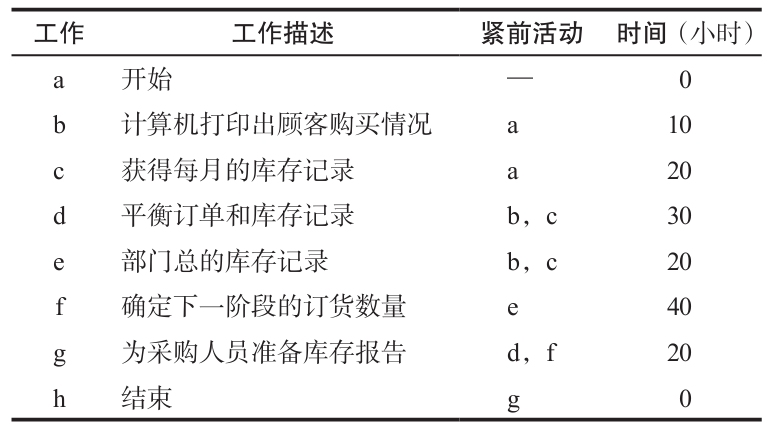 14.一家百貨商場的會計部門每月要向商場的採購代理商提供庫存報告,有關資料如下,請用關鍵路徑法確定: