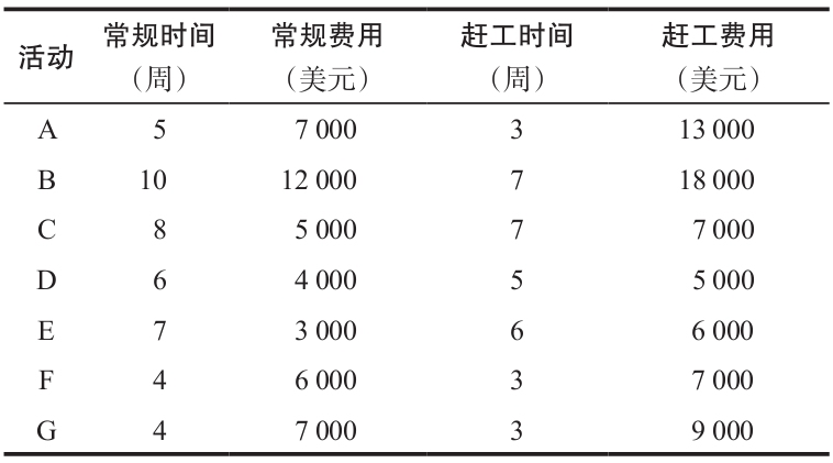 b.數據如下表所示,要求項目完工時間縮短3周。假設成本增加與時間縮短之間呈線性關係,請逐步說明應該如何安排計劃。