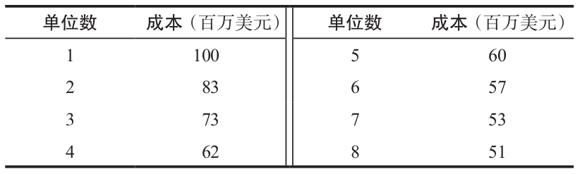 b.從表6-3可以估計出前1 000架飛機的平均成本。在學習率是80%的情況下,第1 000架飛機的改進因子是158.7。前1 000架飛機的製造成本是: