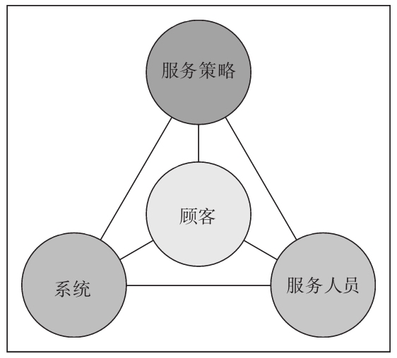 簡單瀏覽一下當地書店的管理類書籍,你會發現從業人員非常關注服務行業。現在我們認識服務的角度同原來看待質量的角度是一樣的:顧客是(或應該是)服務組織所有決策和行動的著眼點。圖9-1中的服務三角很好地闡述了這種觀點。這裡,顧客是服務策略、系統、服務人員三者的中心。從這個角度來說,組織是為了服務顧客而存在的,系統和服務人員則是為了實現服務流程而存在的。但是也有人認為,服務組織也是為了服務全體員工而存在的,因為他們決定了顧客對服務的感知。根據後一種觀點,顧客得到的服務就是管理者應得的回報,即管理者怎樣對待員工,員工就會怎樣對待顧客。如果員工得到了管理者良好的培訓和激勵,他們就會為顧客提供優質的服務。
