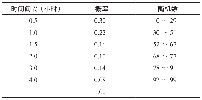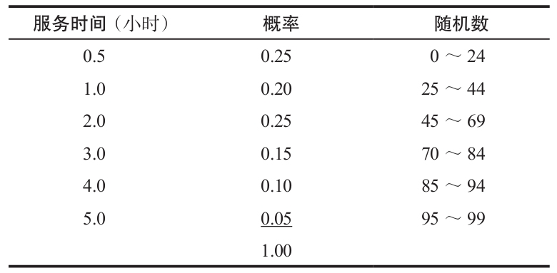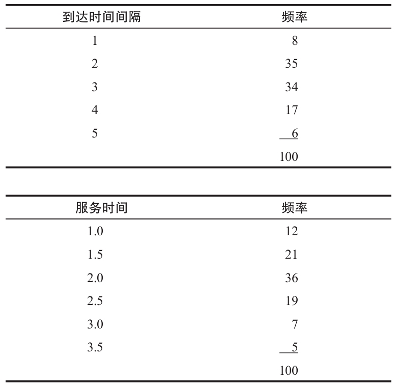 利用下面的隨機數序列,仿真6個到達事件。估算出顧客的平均等待時間和服務人員的平均閒置時間。