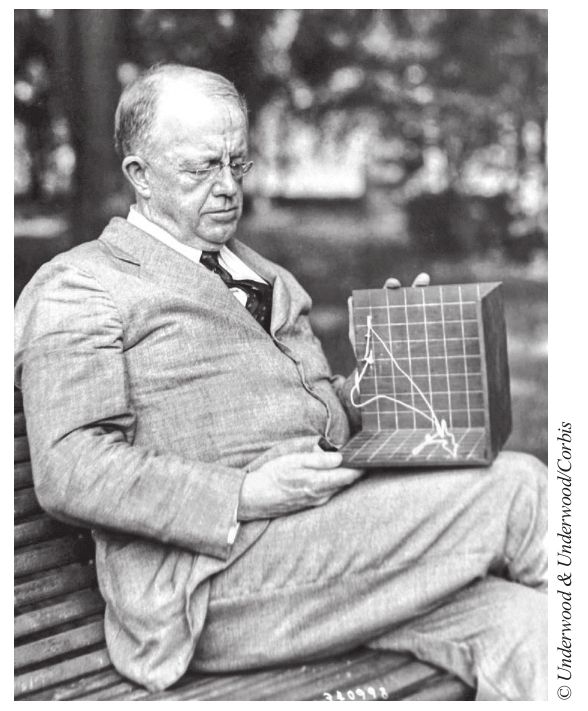 作業測定的先驅弗蘭克·吉爾佈雷思拿著一個胳膊運動的物理模型來分析組裝工作。