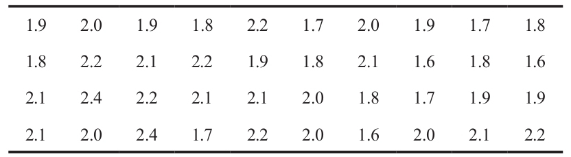 讓我們假設,作為改進過程的第一步,從生產墊圈的機器上取40個墊圈樣本並測量厚度,單位是毫米。下表列出了樣本的測量結果。
