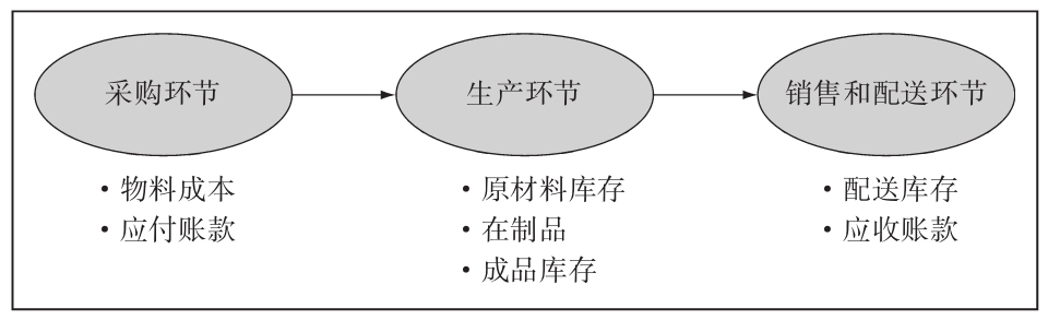 有效的績效衡量指標不僅能夠反映三大職能(採購、生產、銷售和配送)對企業運營的整體影響,還應該體現財務表現。現金循環週期 (cash-to-cash cycle time)就能衡量供應鏈財務方面的效率。現金循環週期反映了圖17-2中的採購、生產、銷售和配送的效率。同時,它反映了企業經營中的一條金科玉律:現金為王。我們可以通過利用採購、會計、生產和銷售相關數據來計算該指標。