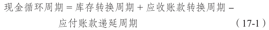 圖17-3顯示的是計算現金循環週期的數據。這些數據由公司不同部門控制。目前應付賬款金額是採購部門基於信用基礎和供應商協商的結果,即公司欠供應商的賬款。該金額取決於公司的信用。