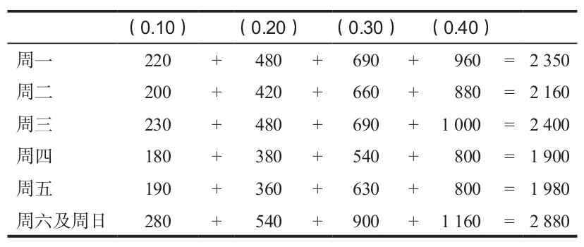 b.使用加權平均預測每天的需求量,過去4周的權重分別為0.40、0.30、0.20以及0.10。