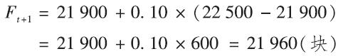d.假設使用c中的預測量,本週的實際需求變成了22 500塊。下週的新預測量會是多少?