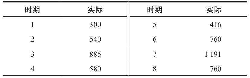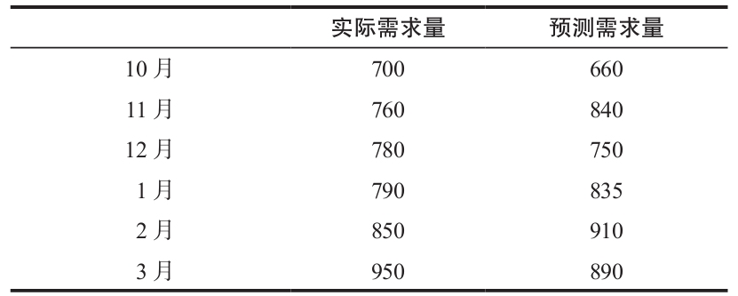 一個具體的預測模型被用來預測某種特定產品的需求,預測需求量和相應的實際需求量如下表所示。使用平均絕對離差以及追蹤信號方法來評價預測模型的準確性。