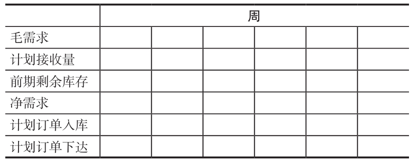 注意:對於以下問題,為了簡化數據處理,包括前幾期發出的訂單的計劃收料,都可以採用以下6行框架(現實中存在許多不同的技術,但關鍵的問題在於即時跟蹤現有庫存,以及何時到達、需要什麼與訂購批量的大小)。