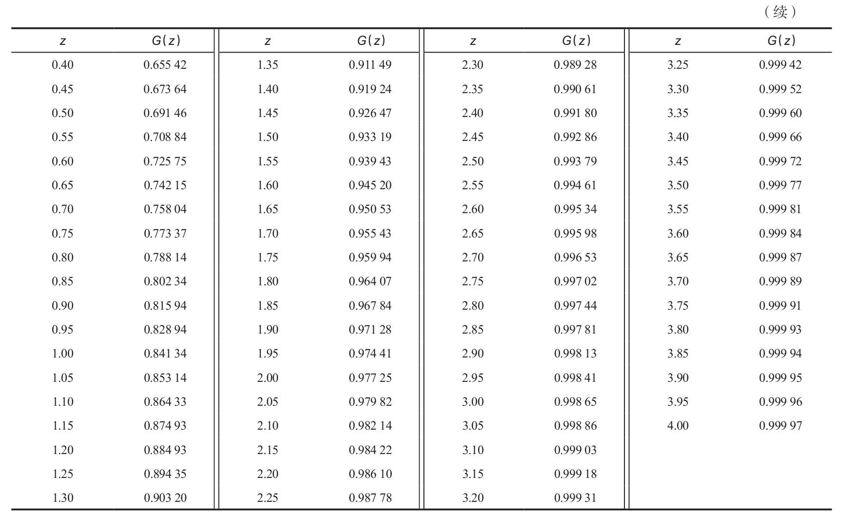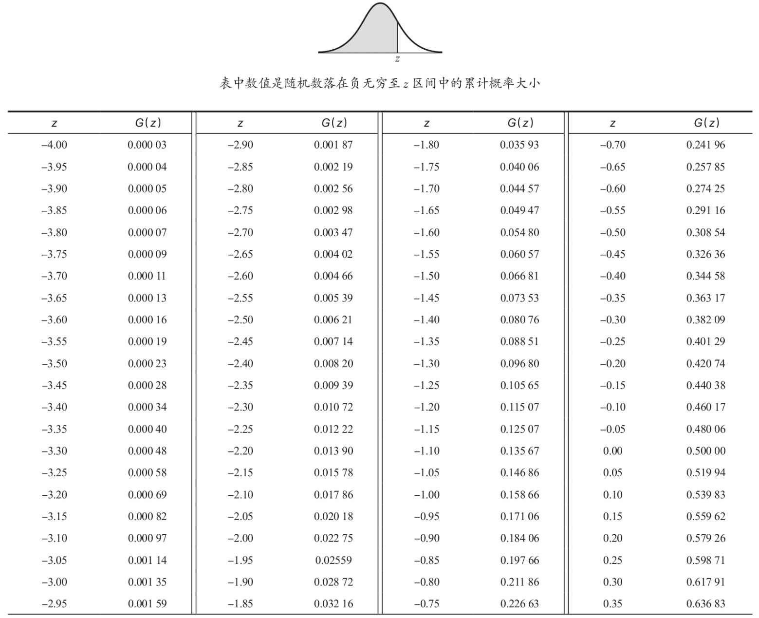 附錄G 累計標準正態分佈概率表