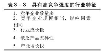 表3-3列出了一些行業特徵,具有這些特徵的行業會出現高度的競爭水平。