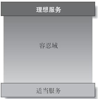 儘管如此,你也許看到目前的經濟形勢對理想工作機會的限制,並且你所在大學的分配辦公室並不一定和所有你感興趣的公司建立了合作關係,一般來說在這種情況下,顧客雖仍期望達到他們的渴望,但還是能認識到達成期望的可能性並非總是存在,我們把這種可接受服務的門檻等級叫作適當服務——顧客願意接受的最低等級的服務。4當經濟下行時,許多接受過高級技術培訓的大學生接受了快餐店的低等級工作或沒有收入的實習生崗位,這時他們仍然抱有很高的期望和理想,但也同時認識到在現存的市場條件下很難達成期望。大學分配辦公室能提供的適當服務比畢業生的理想服務標準低很多,但還是有一些畢業生接受了任何能賺錢的工作,另外還有一些畢業生選擇了短期無報酬的實習生崗位以求獲得工作經驗。適當服務代表了“最低的可接受的期望”,5即對於顧客來說是可接受服務績效的最低水平。