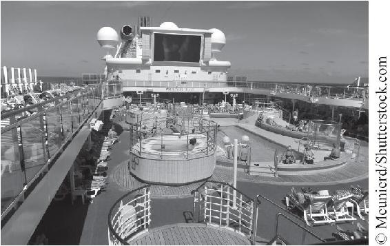 除了影響個人行為,服務場景還影響顧客與員工之間交流的質量,這體現在人際交往性服務中。有人說:“所有的社會交往都受其所處的有形環境的影響。”16這裡的“有形環境”能夠在交往持續時間和實際進展方面影響社交活動本身。環境可變因素(如身體距離、座位安排、空間大小和可變通性等)能夠定義顧客與員工或顧客之間交流的可能性和交流效果。下圖為荷蘭至美國航線遊輪的照片,遊輪中服務場景的設計遵從於指定地區的交往規則、習俗和期望,並由此影響社交的效果。17遊客在日光浴平臺親密的身體靠近,本身也說明了某種行為方式,很顯然這裡的度假場合並非為隱居者而設計。一些研究者指出重複出現的社會行為方式是與特定的有形場合相聯繫的,每當人們處於典型場合中,就可以預見其行為。18