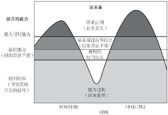 (3)需求與供給在最佳能力上平衡(理想的使用狀態)。員工和設施都處於理想水平,沒人過度工作,可以維護設備,顧客可以獲得質量相當高的服務而沒有額外的等待。