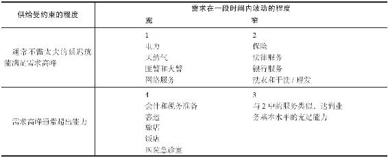 並非所有企業都一直面臨供給與需求管理的挑戰,問題的嚴重性將依賴於需求隨時間波動的程度以及供給受限制的程度,見表13-1。3一些類型的組織將面對較大的需求變化(如醫院、餐廳等),而其他類型組織的需求僅存在微小變化(如洗衣店及銀行等)。一些組織即使需求發生變化,需求高峰也可以得到滿足(如供電、天然氣和網絡服務),而其他組織的需求高峰可能會超出能力(如急診室、足球場旁邊的餐廳和靠近大學的飯店等)。那些需求變動大的企業(表13-1中的單元1和4),尤其是那些變動幅度大、需求經常超過能力的企業(單元4),將在本章找到對其成功有重要作用的問題和策略。那些發現自己處於單元3的企業需要擴展能力以適應需求過剩的情況。表13-1用以闡明那些行業可能被歸為哪一類。實際上,針對任何行業的單獨一家企業,由於環境的不同,它可能歸屬於任何一個單元。