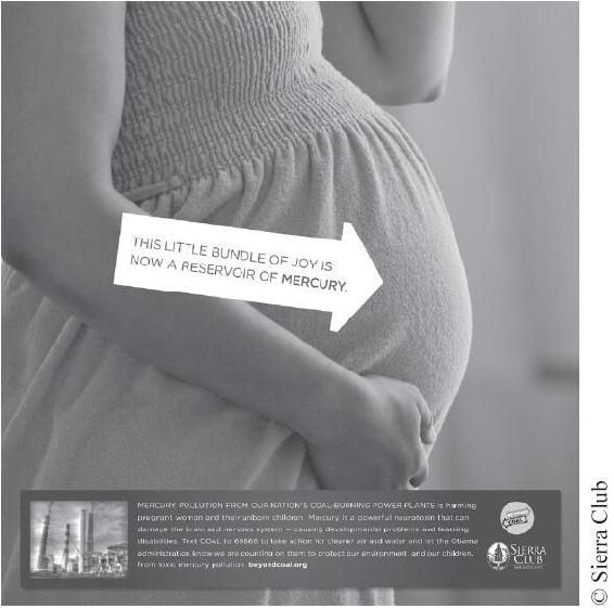 西埃拉俱樂部的廣告以有形的方式展示了燃煤電廠汞汙染的危害。專注於未出生的寶寶是西埃拉俱樂部傳達信息的生動方式。