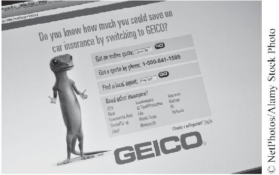 (5)品牌圖標使服務有形化。在高度競爭的市場中,服務產品廣告商如何獲得競爭差異化和高品牌認知度呢?在快餐業和保險業,這個問題的答案就是創造一個可以識別的圖標以代表企業並形成品牌可視性。麥當勞擁有非常經典的服務品牌圖標——一個紅黃相間的小丑形象——代表了麥當勞品牌和麥當勞叔叔兒童基金會。廣告圖標對那些提供複雜且不易理解的服務行業更為關鍵,保險業就是其中之一。美國家庭人壽保險公司(American Family Life Assurance Company,AFLAC),在美國和日本市場經營非強制性的補充保險,該公司面臨一個很大的挑戰:如何讓潛在客戶按照所需保險的名稱進行諮詢。為解決此問題,AFLAC引入了AFLAC鴨,一隻戴著擴音器會為客戶解答保險相關問題的鴨子,這隻鴨子產生了非常好的可視性效果。美國CNBC電視臺、傑·雷諾今夜脫口秀(The Tonight Show with Jay Leno)和週六夜現場(Saturday Night Live)等節目還對此進行了介紹。GEICO公司(美國政府員工保險公司)在電視廣告中展示瞭如右下圖所示的畫面,其中的主角是一隻說話帶著倫敦腔的蜥蜴,名為蓋寇(Gecko)。蓋寇強化了GEICO有韌性、持續為顧客提供價格低廉的汽車保險的品牌形象。GEICO公司創造的蜥蜴蓋寇在世界廣告業界被廣泛讚譽,也被投票選為美國最受歡迎的廣告形象。