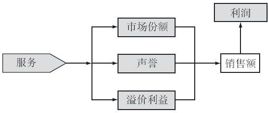 為說明服務對市場份額的影響,一組研究人員提出了他們的解釋:滿意的顧客傳播積極的口碑來吸引新顧客,進而提高市場份額。他們稱,做廣告去宣傳出色的服務而沒有相應的質量為此做保證,市場份額就不會增加。16